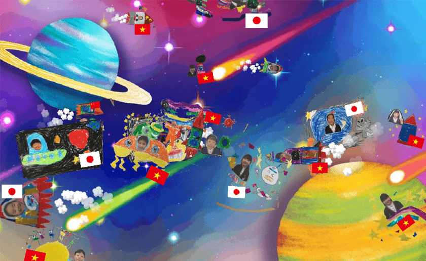 きっつの人気教材であるアートポン!を使って、ベトナムと日本の園児たちが共同制作を行います。